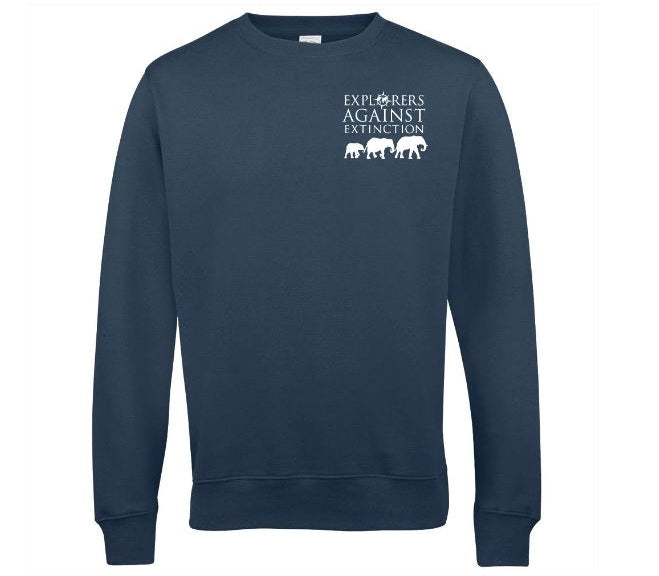 These super cosy sweatshirts come in French Navy with the Explorers Against Extinction logo printed in white to the left chest.