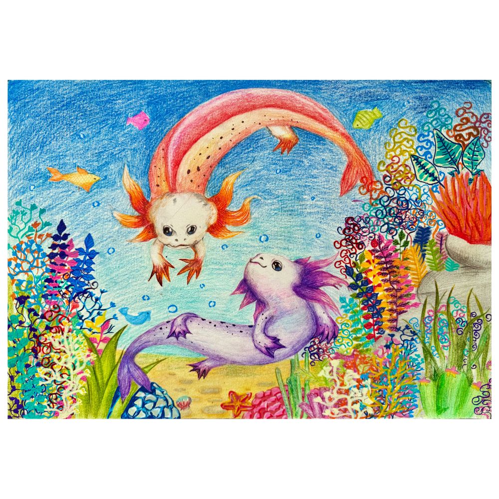 Original artwork by Crystal Zifei Wu, age 10, kindly donated to Sketch for Survival Junior 2025 in support of Explorers Against Extinction.