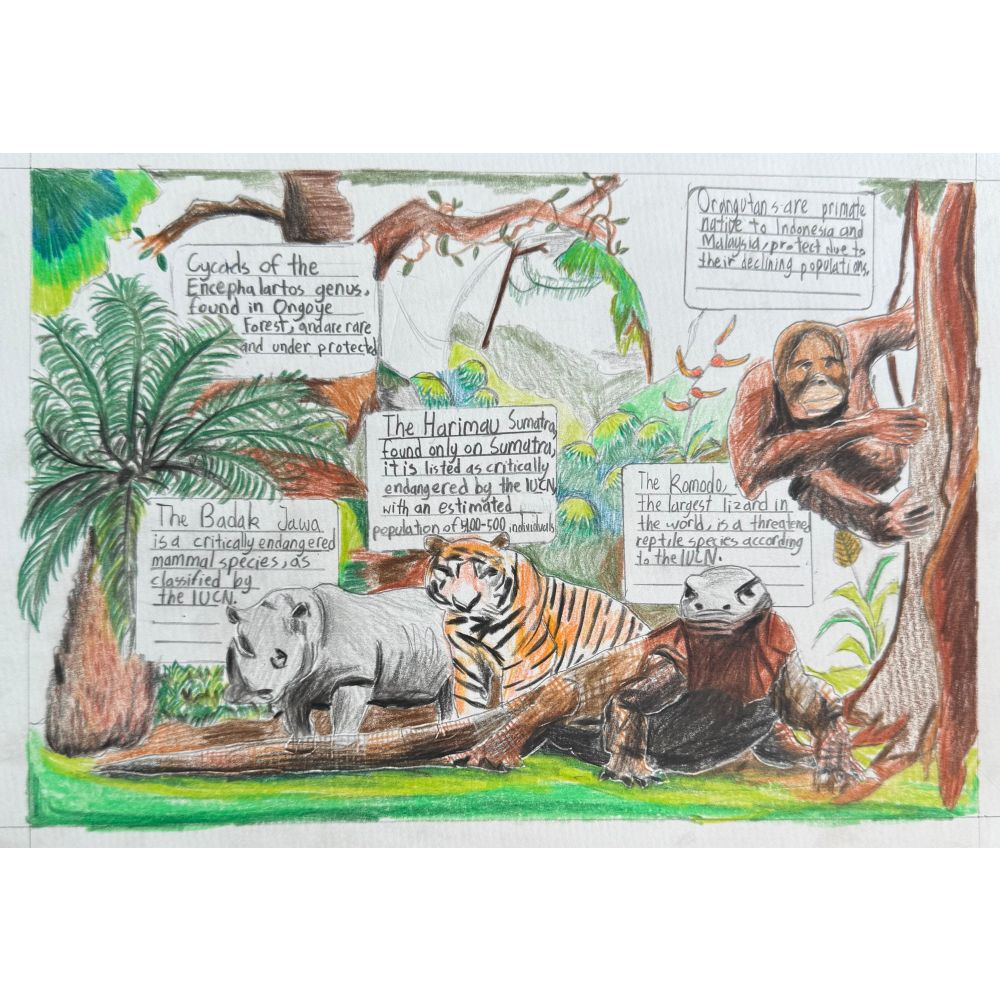 Original artwork by Joanna Anindita Susanto, age 10, kindly donated to Sketch for Survival Junior 2025 in support of Explorers Against Extinction.