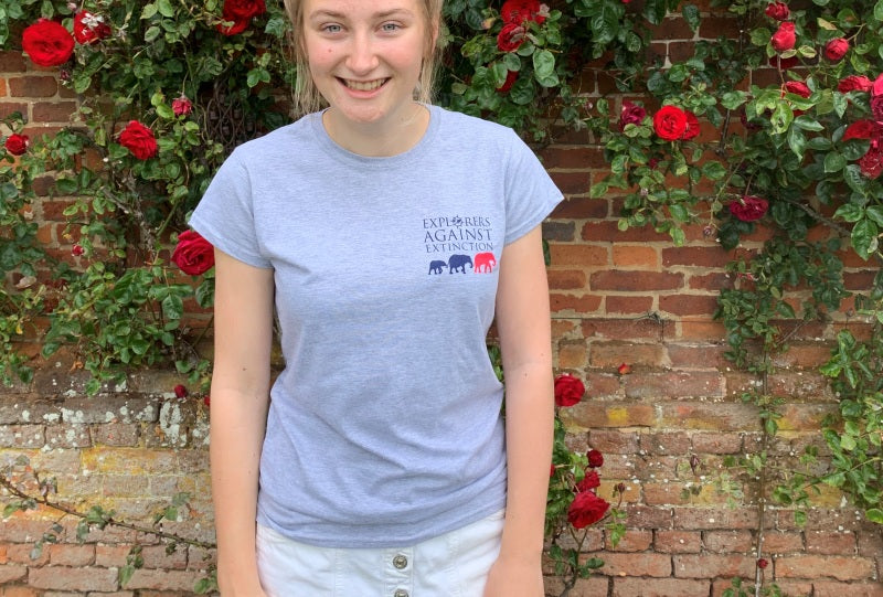 These pale grey Explorers Against Extinction tshirts have our classic compact logo on the left chest. They come in a unisex fit, or a slimmer, more fitted ladies style.